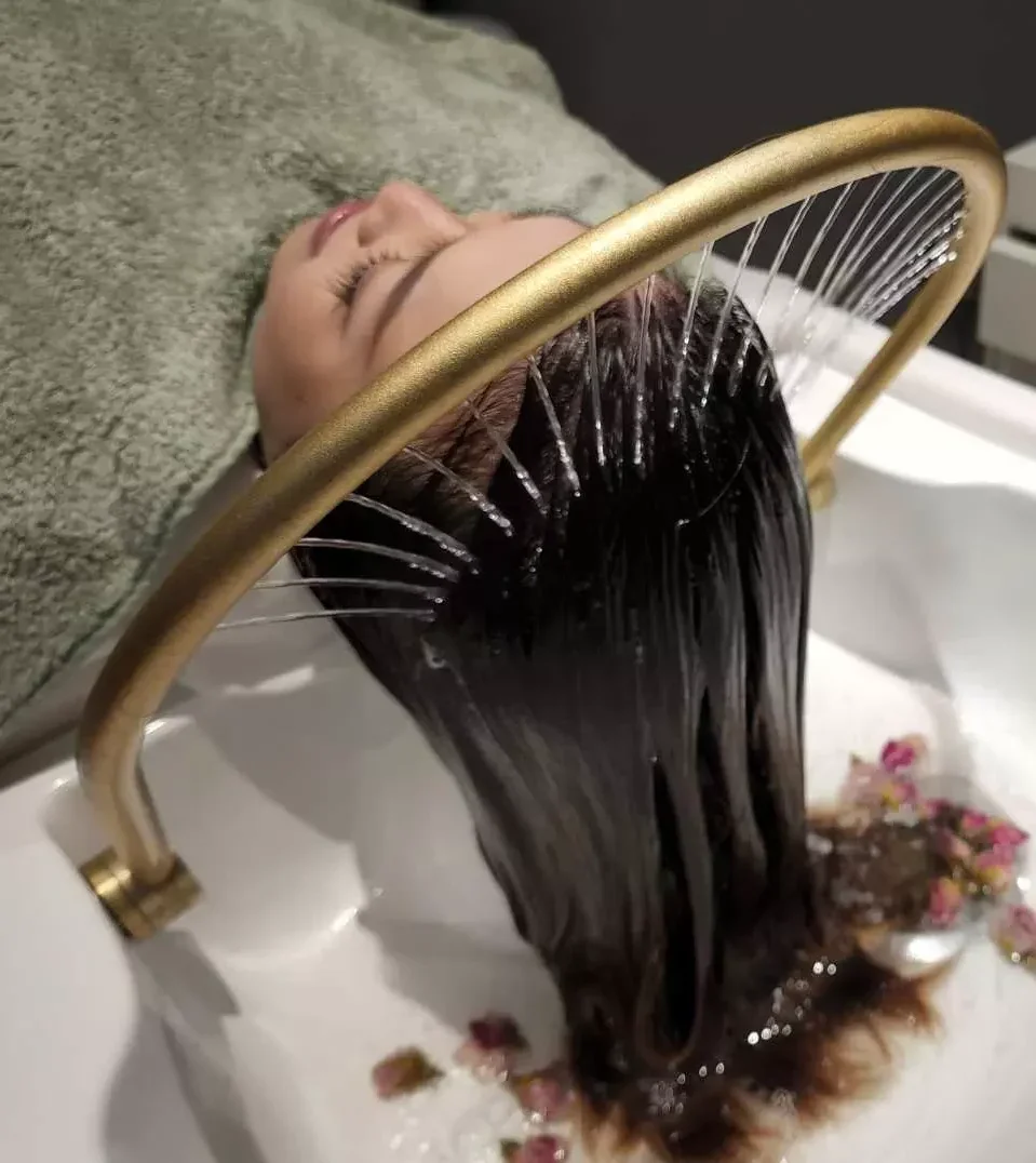 A nourishing hair mask is applied to your hair, then steamed for maximum absorption. The soothing halo waterfall rinse will bring you to a state of deep relaxation. After a final rinse, your hair is finished with a tailored finishing product, towel-dried, and gently combed.